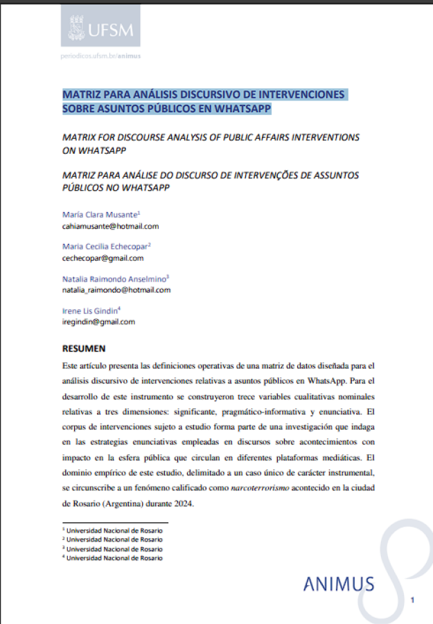 Este artículo presenta las definiciones operativas de una matriz de datos diseñada para el Análisis discursivo de intervenciones relativas a asuntos públicos en WhatsApp.